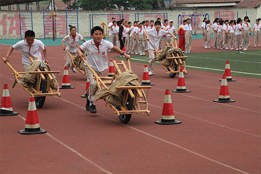 為了讓更多青少年感受沂蒙精神,傳承紅色文化,世界冠軍接力隊(duì)和參賽選手所用獨(dú)輪車賽后全部捐贈(zèng)給臨沂市樸園小學(xué)。